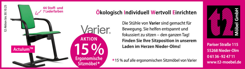 Hier können Sie sich über uns und unser Leistungsspektrum informieren. Ökologisch, individuell, wertvoll einrichten, dafür steht die t2 Möbel GmbH seit 1985 in Hahnheim. Wir fertigen nach Wunsch aus ökologisch unbedenklichen Materialien, planen maßgenaue Lösungen für alle privaten Lebensbereiche und für öffentliche Räume. Im t2-Laden in Nieder-Olm beraten wir Sie zu unseren vier großen Themenbereichen individuell wohnen, aktiv sitzen, gesund schlafen und sinnvoll schenken. Ein buntes Spektrum an nachhaltig und fair produzierter Mode, Fashion- und Wohnaccessoires, insbesondere Kunsthandwerk aus aller Welt erwartet sie hier.