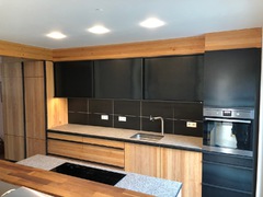 Mit einer Massivholzküche von t2 entscheiden Sie sich für hervorragende handwerkliche Material- und Verarbeitungsqualität sowie maßgeschneiderte Lösungen nach Ihren individuellen Vorstellungen und räumlichen Möglichkeiten. Fast alles ist möglich durch unsere individuelle und sorgfältige Planung in enger Zusammenarbeit mit Ihnen: die optimale Ausnutzung vorhandener Räume, Speziallösungen für Nischen und Ecken, Korpus-Maße in Höhe, Tiefe und Breite auch außerhalb der Norm, Hochschränke mit Stauräumen, Schubläden mit Vollauszügen und gedämpfen Rückeinzügen, Schubläden auch in den Sockelbereichen, moderne Beleuchtungstechnik, Arbeitsplatten aus Naturmaterialien wie Holz, Keramik, Naturstein, Linoleum oder Komplett-Edelstahl-Lösungen.